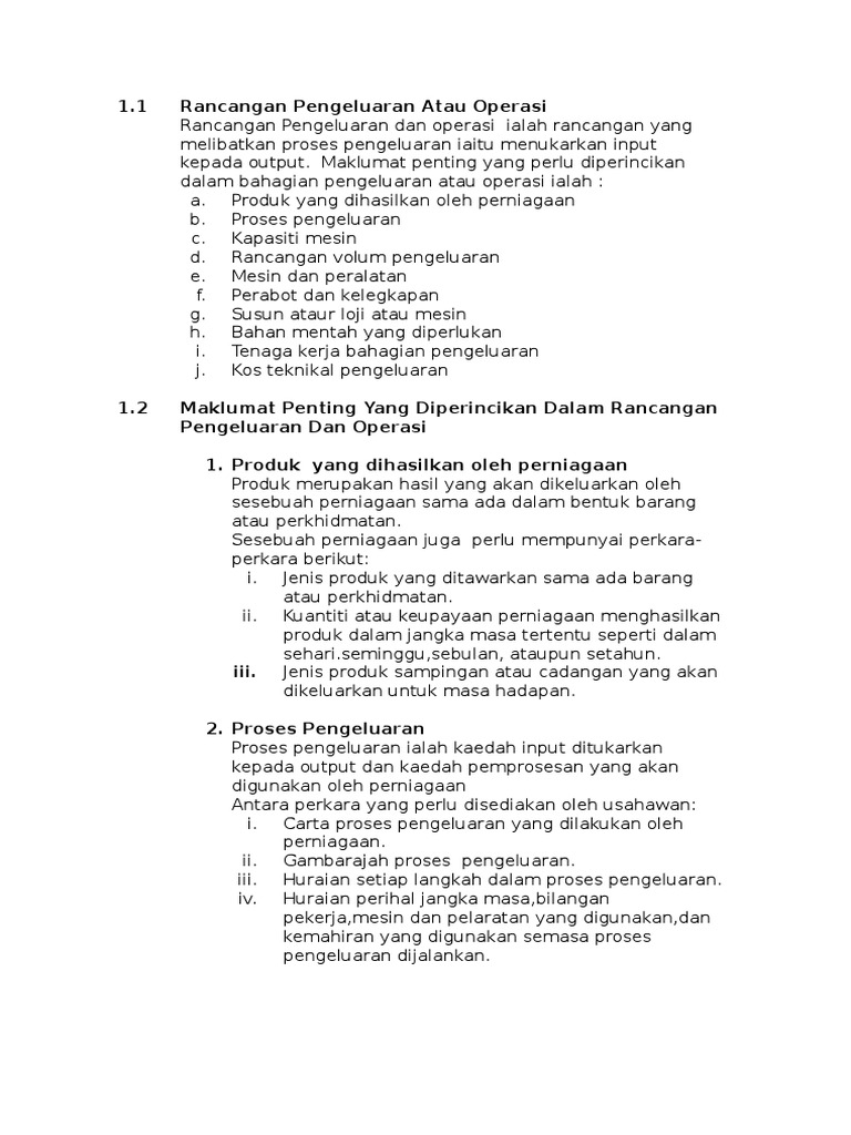 Rancangan Pengeluaran Atau Operasi Pengajian Perniagaan